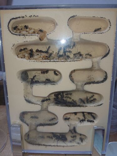久々のアリ日記です(笑)。 暖かくなってきたからか、最近はかなり活発になってきました…蜜や肉餌の量も春頃の倍くらい食べますし。U^q^U