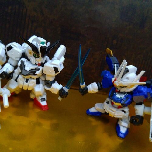 ガシャポン戦士フォルテが停止してしまい、結局発売されなかったガンダムキャリバーンを、モビルスーツアンサンブルを切り詰めるカタチでSD化、フォルテのエアリアル達と並べられるように改造してみました。まあそれでも並べるとやっぱゴツいですが(笑)。